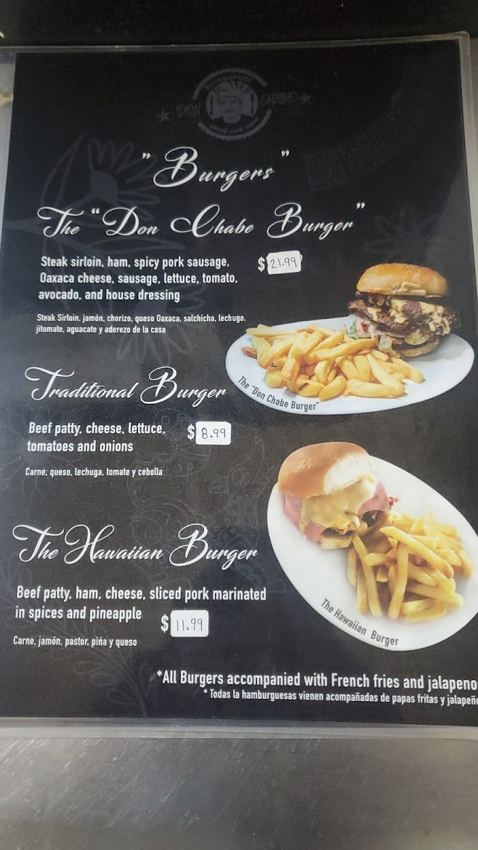 Introducing Don Chabe Steak, a culinary gem located at 3933 Main St, Dallas, TX. This restaurant specializes in a diverse menu, catering to both steak lovers and burger aficionados alike. The standout item is the Don Chabe Burger, priced at $21.99, known for its bold flavors and top-quality ingredients.